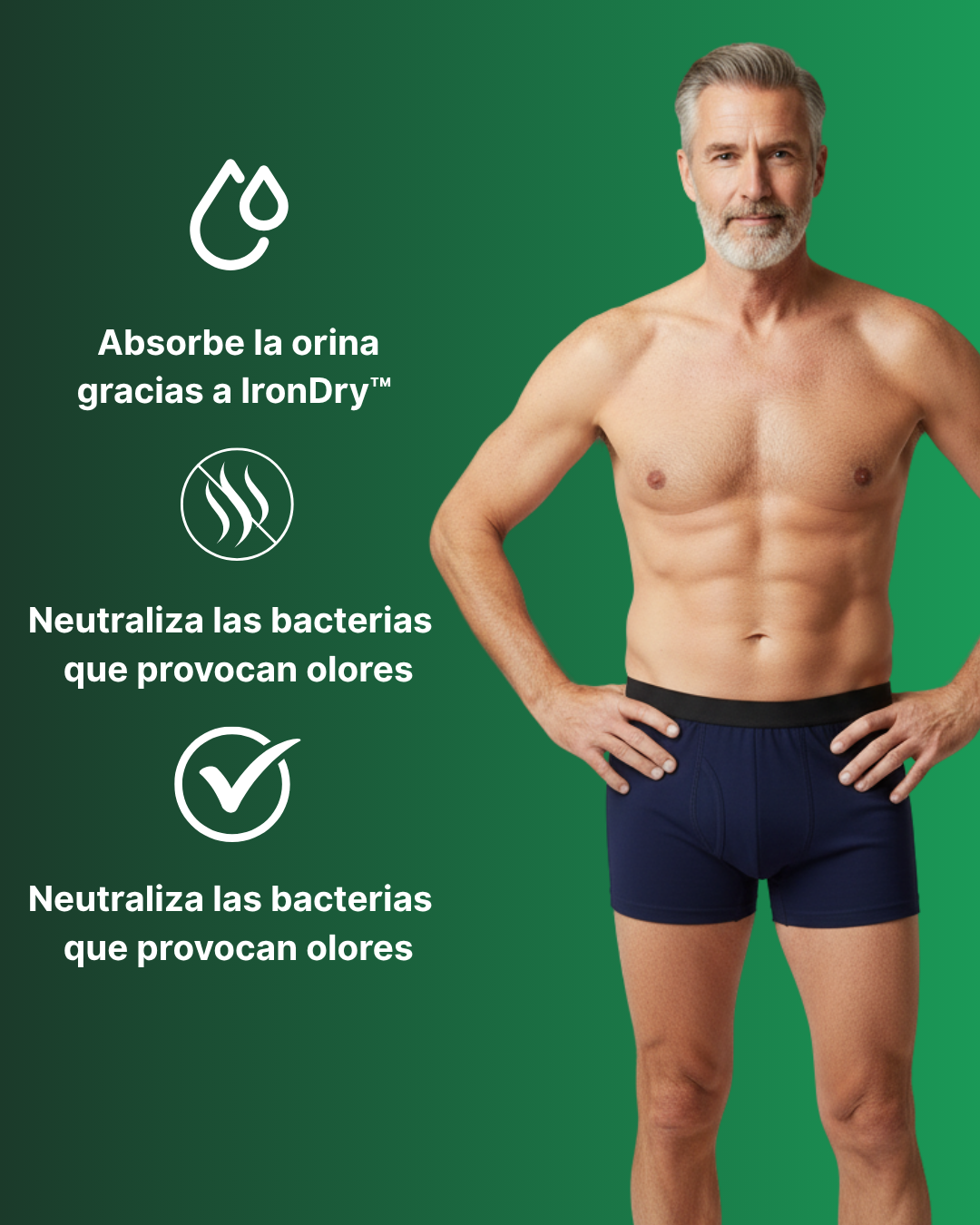 Los Undercare Boxers absorben discretamente las últimas gotas, sin vergüenza ni marcas visibles. Sin preocupaciones, solo comodidad y confianza.