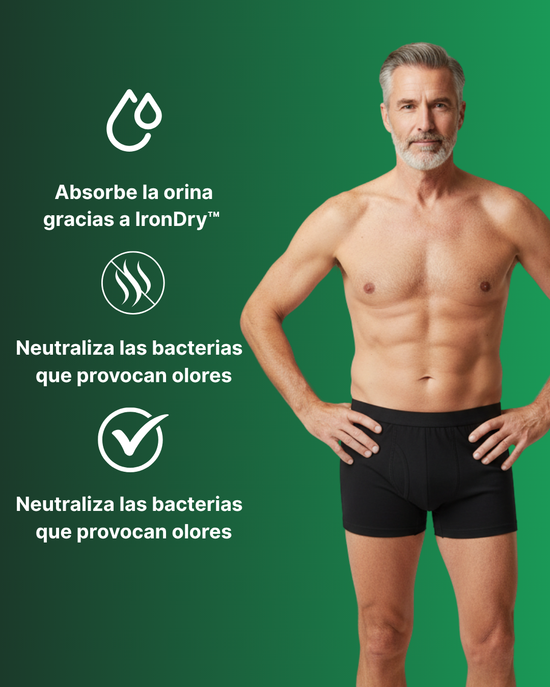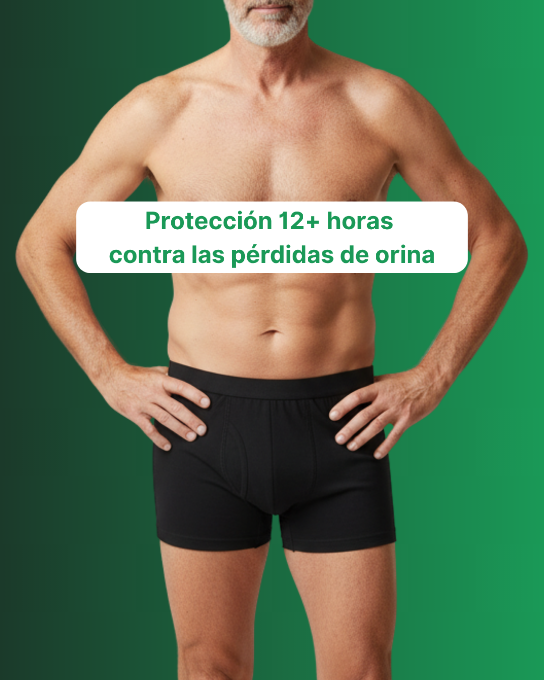 Los Undercare Boxers absorben discretamente las últimas gotas, sin vergüenza ni marcas visibles. Sin preocupaciones, solo comodidad y confianza.
