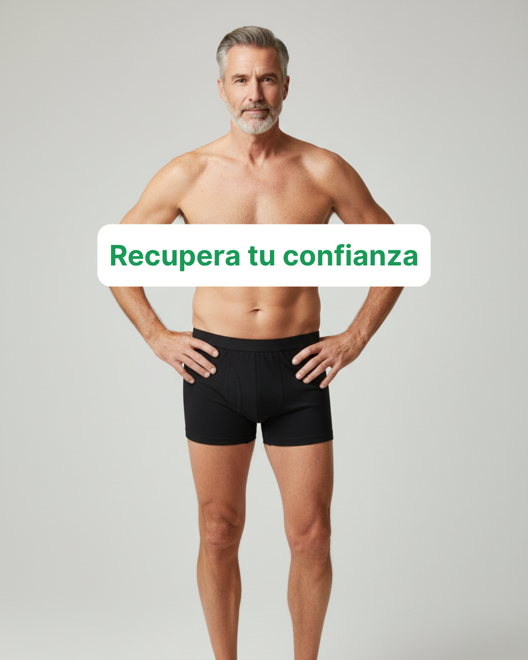 Los Undercare Boxers te brindan la comodidad y la confianza que necesitas durante la recuperación, con una protección discreta que nadie notará.